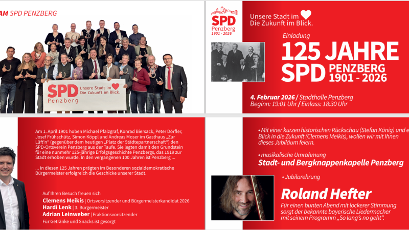 Einladung zum Jubiläum "125 Jahre SPD Penzberg" Am 04. Februar 2026 - 19:01 Uhr …